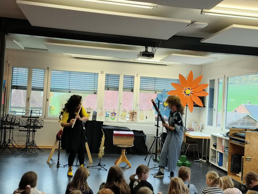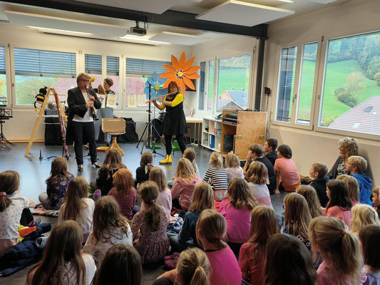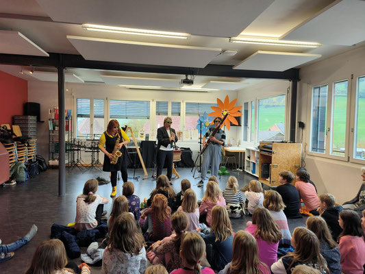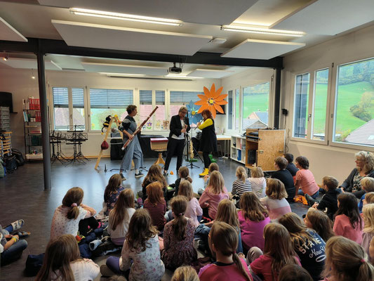 2017/18 KG bis 5. Klasse Heimiswil und Kaltacker am Mo., 05.02.2018 gemeinsam einen Morgen in der Turnhalle Kirchmatte mit dem Musikkünstler Philipp Läng.