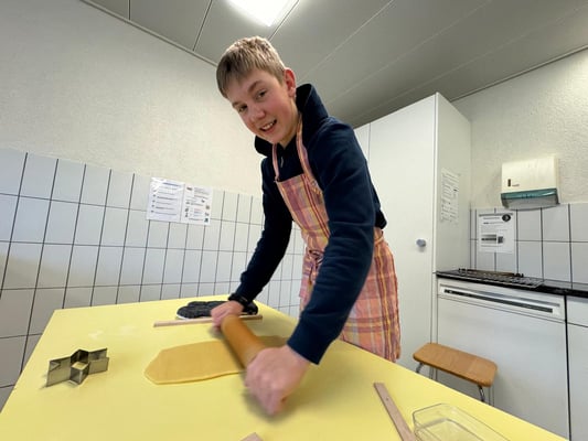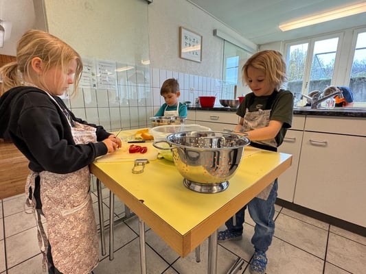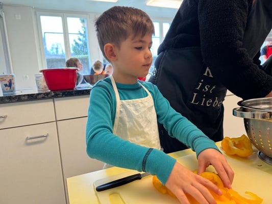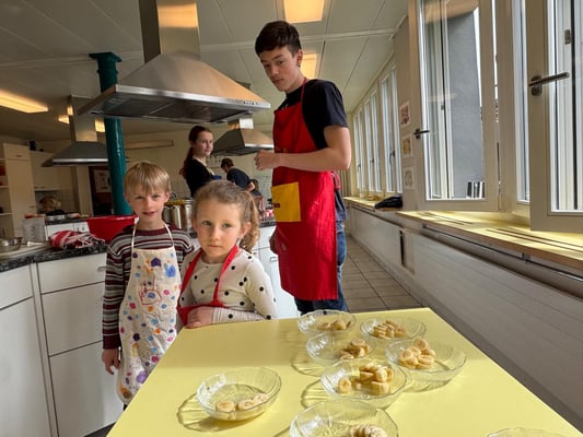 Die Kindergärteler kochen zusammen mit 8. Klasse im WAH, Fr., 21.03.2025 - ein traditioneller Anlass