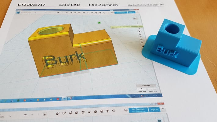 Wir benützen nach wie vor das etwas veraltete Programm 123D-Design von Autodesk.