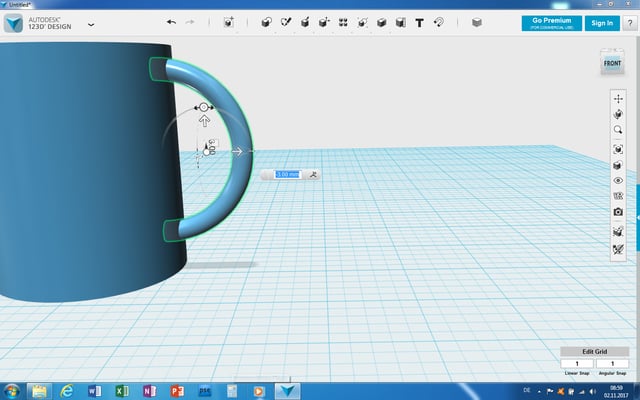 A coffee mug. Extruding, Merging and Spliting in 123D Design