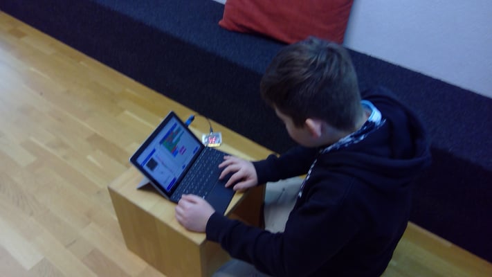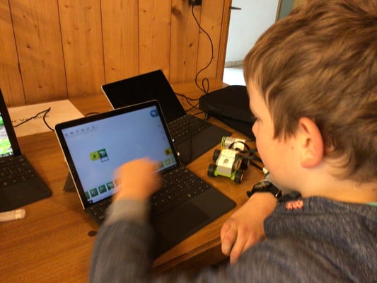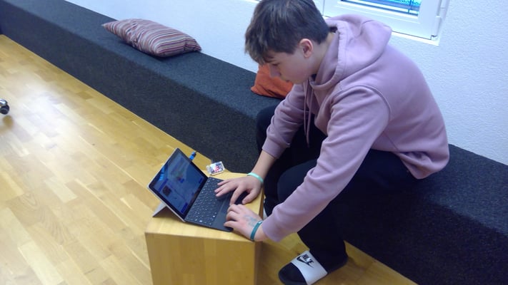 Der Sense-Roboter ist ein Gerät, das Jugendliche animieren soll, mit einfachen Programmbausteinen den Roboter zu steuern. Wie ein Puzzle lassen sich die einzelnen Programmier-Schritte zusammenbauen. Spielerisch lernen man so, was es braucht, um die Bewegung in eine Programmiersprache zu übersetzen.